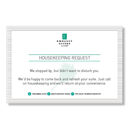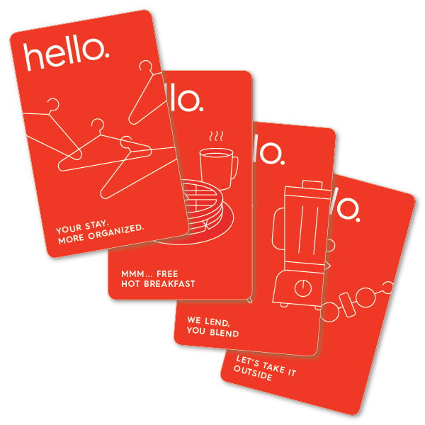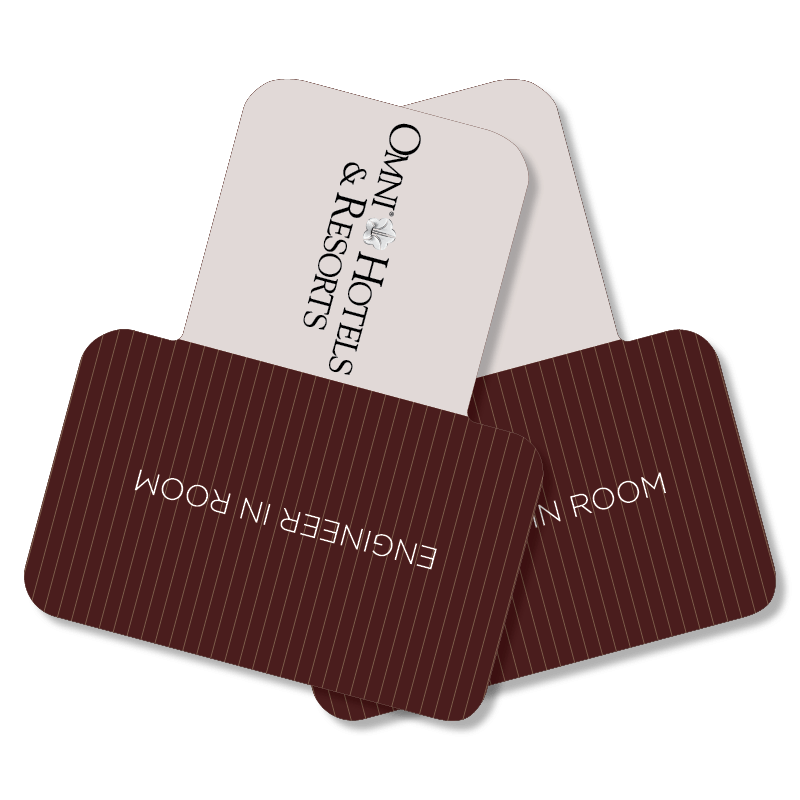 We stay at the ready with your current inventory on-hand for your convenience and immediate needs. As we serve the world’s largest hotel brands, we understand the value as your partner to provide you with your branded in-stock card items to suite your needs from a quick-turn and efficient process standpoint. Choose from the below for your respective corporate hotel.